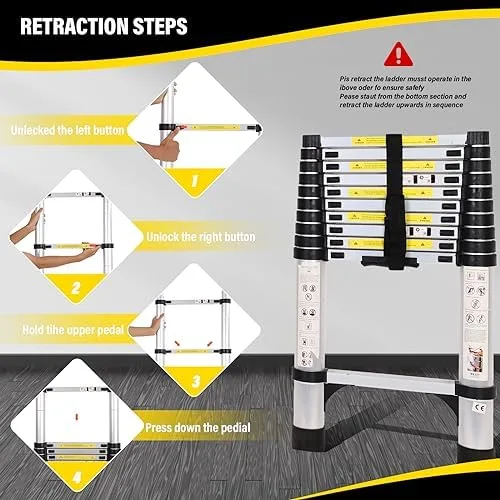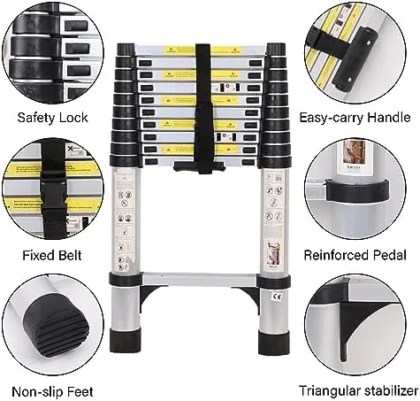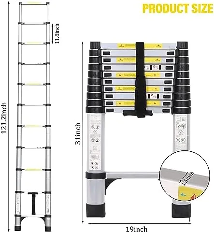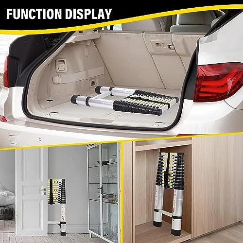【Convenient】Easier to Carry and Move Around, the Telescoping ladder is so portable and Compact perfectly fit it in your motorhome SUV RV and any type of vehicle.It extend great big and yet folds up so compact.
