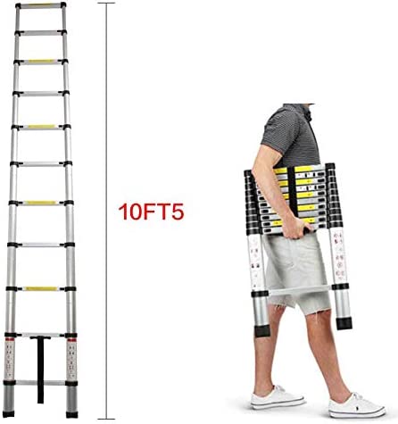 10 FT Aluminum Telescoping Ladder Extension Ladder Anti-Slip Rubber Feet Telescopic Locking Mechanism Compact Ladders for 330 Pound Capacity