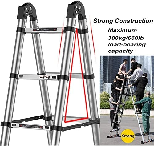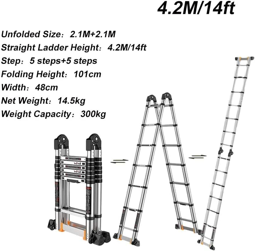 11ft/14ft/16.5ft/19ft/22ft/24ft/27ft Telescoping Ladder Aluminum Extension Folding Ladder, Multi-Purpose Telescopic Ladder with Slip-Proof, Max Load 300kg (Size : 2.1M+2.1M(4.2M/14