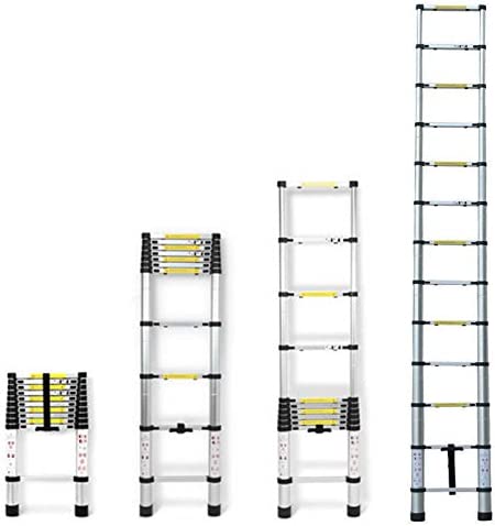 3.Safe & Compact: Featuring durable Aluminium design, industrial-grade height-locking latches and solid anti-slip rubber-tipped feet on the bottom of ladder step, the telescopic ladder is approved by Safety Standard EN131;