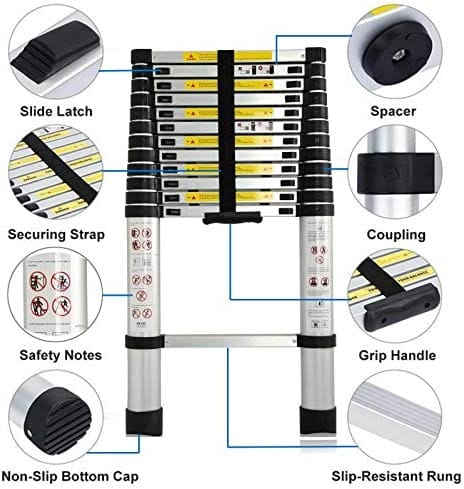 12 FT Aluminum Telescoping Ladder Telescopic Extension Ladder with Locking Mechanism Multi Purpose Compact Ladders for Home Garage Clean 330 Pound Capacity