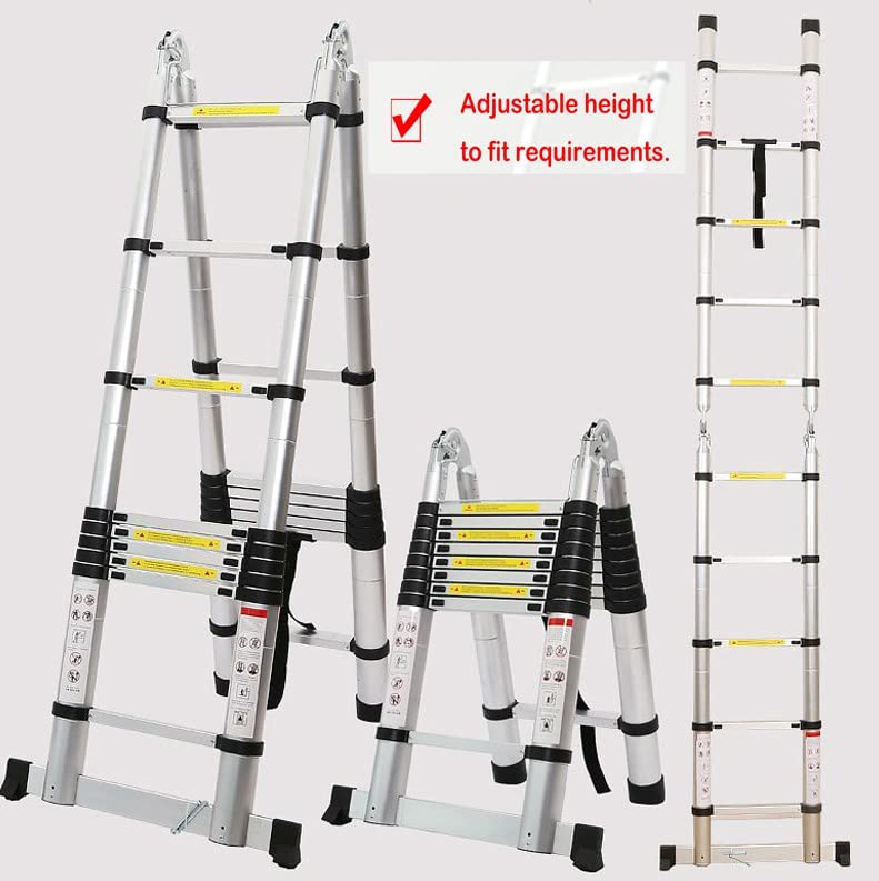 5m/16.4ft Telescopic A-Frame/ Straight Ladder Extendable Folding 16 Steps Multipurpose Ladder Extension