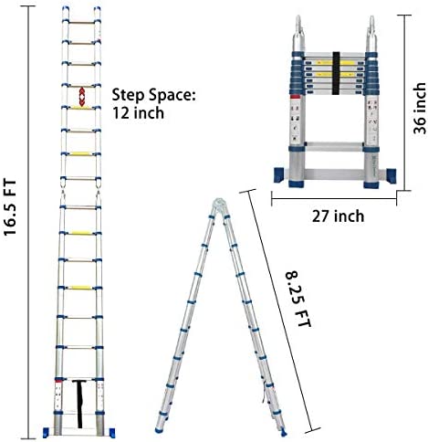 Sturdy Extension Ladder- There is independent locks on each rung, allowing user to adjust any height of the ladder, from 3ft to 16.5ft. The loading capacity is up to 330lbs. It can satisfy different people to use in many works.