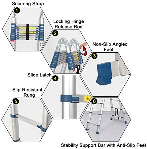 Portable and Easy for Storage- The telescoping ladder is lightweight and can be folded to minimum size of 27*36 inch, easy to transport and store; a heavy duty closure strap secures the ladder firmly, easy to carry it with one hand or put it in your truck. Great for daily use, window cleaning, building maintenance, home decorating, painting, etc.