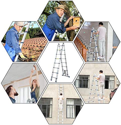 Multi-function: The telescopic ladder can be used as A-Frame ladder, straight ladder, telescoping ladder also can be as stand support of scaffold. You can transform its shape as your need with easy operation.