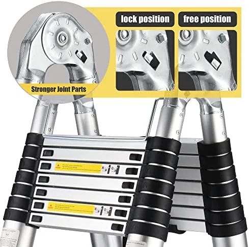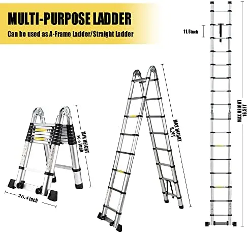 Adjustable Height for Any Task: The independent lock allows you to adjust height from 3.1ft to 16.5ft.Adjusting rung by rung in 1 ft increments to reach and retract any desired height.