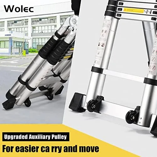 Wolec 16.5FT Telescoping A Frame Ladder with Stabilizer Bar Wheels,Portable Multi-Purpose Collapsible Ladder for Roof Ceiling Household Use