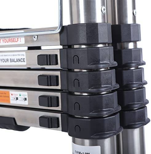 — Safe and compact: black anti-slip rubber sleeve on the bottom of ladder step and stable locking