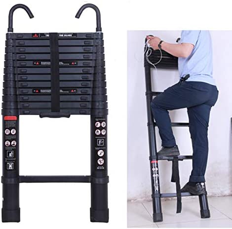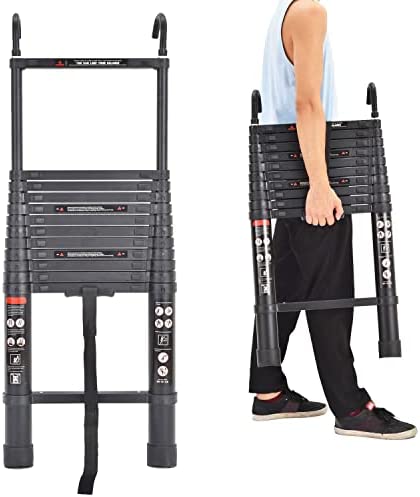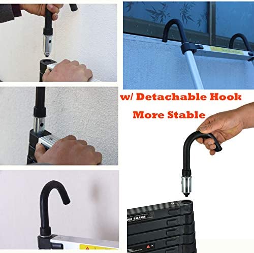 Reliable and Durable: The max load capacity of the ladder is 150kg (330lb), you can safely use this ladder. Anti-slip rubber feet and detachable hook make the telescoping ladder more stable; and give you maximum safety. With the grip handle, you can carry the ladder with only one hand. (NOTICE: The hook of the ladder cannot be hung on a pipe with a diameter of more than 7cm. )