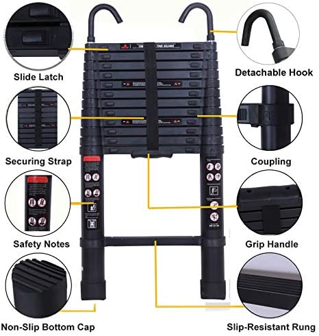 — This is a 3.8m (12.5ft) telescoping extension ladder with detachable hook.