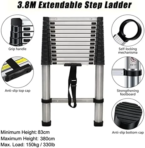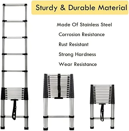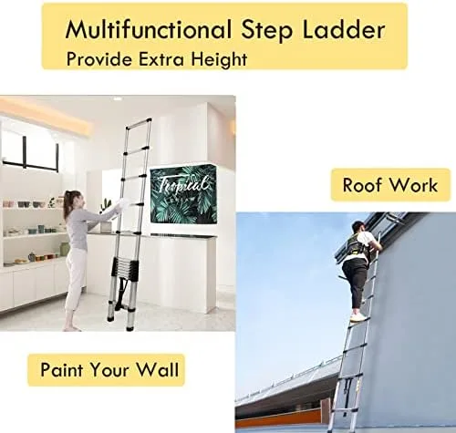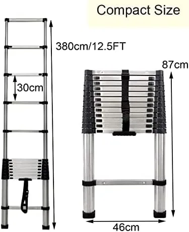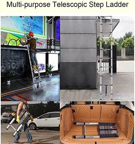 ✅【Space Saving Stair Ladder】: Easy to open and retract, this lightweight telescopic ladder can be extended to the right height for any job. Compact and extendable size telescopic ladder is convenient for transport and carry. The lightweight and small size make it easy to stow in the trunk of a car, carry through a doorway, or even store in a utility closet.