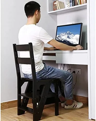 Are you still looking for a suitable stepstool for your home? This 4 tier folding ladder will be your best choice.Constructed with premium pine wood, it can greatly assure your safety duringusing time and serve you and family for a long time. When it not in use, youcan easily fold it to save storage space on your house or use it as a flower rack,storage cabinet or a shoe bench. This stool is both practical andaesthetic. It can also be a décor and bring a traditional style to your home.Add it to cart, let this stool make your life much better and easier! Features -It has a durable and solid construction anda long-lasting using life -Equipped with 4 tiers, easily help you goto the hard-to-reach places. -Can be used as flower rack, storagecabinet, shoe bench and book shelf -Have a smooth and comfortable surface,gives you a wonderful touch feeling Specifications Name: Four-layer Deformation Ladder Chair Material: Pine Material characteristics: Good load-bearing, environmentally friendly and durable Multifunction: Ladder + seat + shelf Color:Light walnut, Natural wood color, White,Black Net weight: 6.3 kg Gross weight: 7. kg Packing size: 95*39*10cm(37.4*15.3*3.9in) Chair shape size: 47*35*90cm(18.5*13.7*35.4in) Ladder shape size: 37.5*35*90cm(14.7*13.7*35.4in) Bearing weight: 120kg Use place: Indoor and outdoor