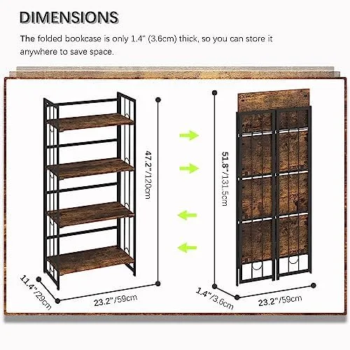 【Simplicity and practical open bookshelf】it is a industrial style design with simplicity and retro, which can not only make your room in good order, but also occupy few space. You can put foldable bookshelf in any space of your home, such as living room, bedroom, corridor, kitchen, balcony, etc.