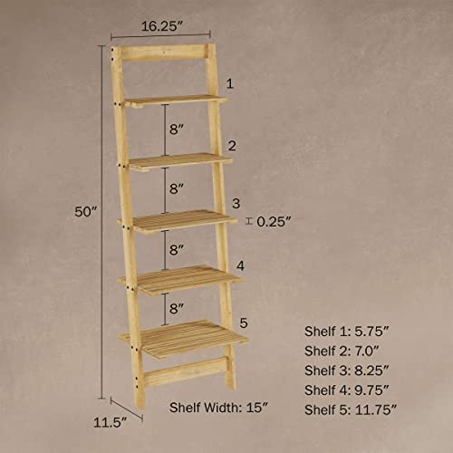 5-Tier Ladder Shelf – Wooden Narrow Leaning Book Shelf for Bedroom, Living Room, or Kitchen Shelving – Boho Home Decor by Lavish Home (Oak)
