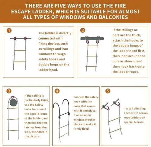 【Compact & Portable】Due to its compact design and lightweight design, it can be easily carried or stored under the bed, in the closet, or hung around the window without taking up too much space. This kind of emergency ladder is easy for adults and children and light in weight; even children can easily carry it.