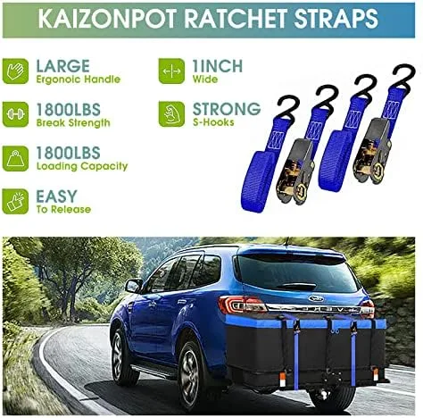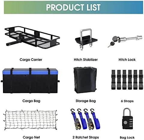 【COMPLETE ACCESSORY PORTFOLIO】Except cargo bag set, it also includes 2 ratchet straps & an 3’x4′ stretchable cargo net to ensure your belongings are securely transported and a hitch stabilizer to reduce noise & a hitch lock to protect your carrier from theft