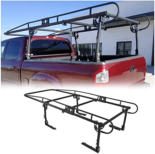 Over cab design for long cargo to be loaded,making it ideal for any shop owner, home craftsman or contractor with a lot of equipment to haul. Multiple tie-down points, straps, bungees for securing ladders, pipes, lumber and other cargo fits different sizes of beds Add more utility to your truck.