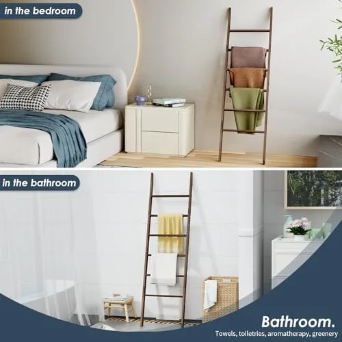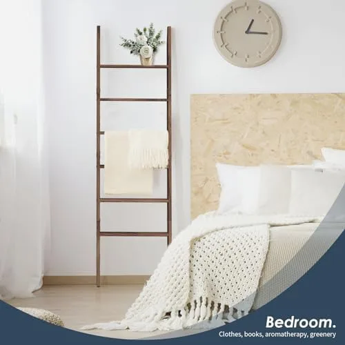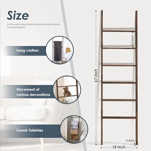 PERSONALIZE WOODEN LADDER SHELF: This ladder of blanket storage for living room comes with 6-layer ladder boards, you can choose the number of rungs or the height of the towel stand to suit your space and what you want to hang. You can use this towel ladder to create personalized and unique pieces that fit your space and style.