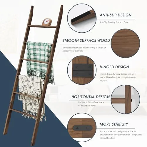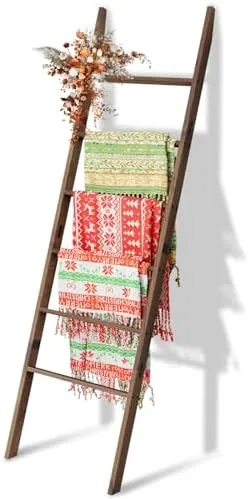 MULTI-FUNCTIONAL LADDER DECOR: The ladder rack is not only a hanger for display blanket , but also can be used to hang towels, throws, quilts, scarves, ties, clothes, belts and other items, it is a multi-functional piece of farmhouse furniture. You can also use them to display your collections or plants as a great piece of fireplace, farmhouse, living room, bedroom or bathroom wall decor. The step ladder can be placed in any room to add a touch of warmth and style.