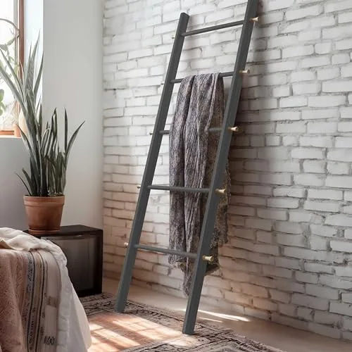 DEEP THINKING, BETTER DESIGN: Built with rounded rungs and adjustable wall corners, our wood ladder decor protects your blanket from splintering and keeps your wall and floor scratch-free. Dimensions: 58″ Tall x 22″ Wide.