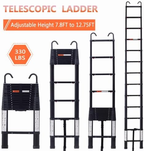 【Versatile Ladder】The maximum height of the ladder is 12.75ft (3.9m). the telescopic extension ladder can be used for home households, hobbies or outdoor activities. such as repairing light bulbs, cleaning windows, trimming branches, climbing trees, shoveling snow, decorating your home, painting on walls, attic ladders, RV ladders, loft ladders and so on. This little giant ladder will bring great convenience to your life.