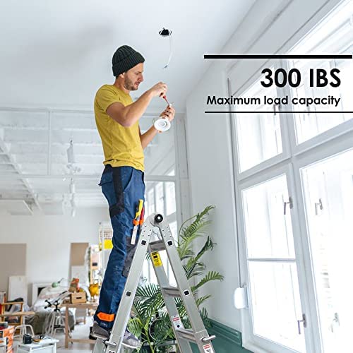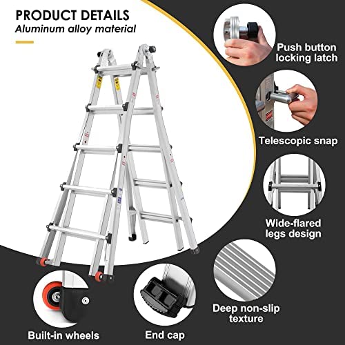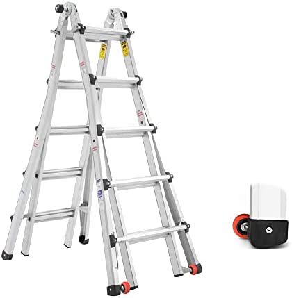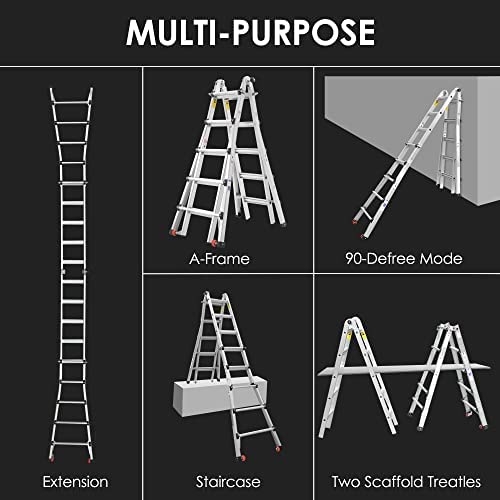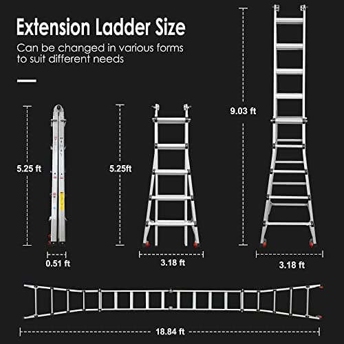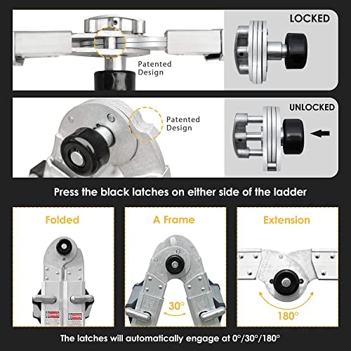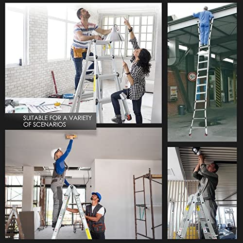 Multi-Purpose: This ladder about 5.58 ft at first but once you release the hinge locks and release the rock locks, this ladder can extend to great heights for multi-use, and the out sections can be removed and with its built-in trestle brackets, can be made into a scaffolding ladder (trestle and plank).