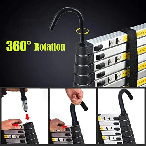 ✔✔ Safe High Quality Retractable Ladder — Made of corrosion resistant aluminum alloy, the collapsible ladder comes with removable hooks for use on a high roof. The maximum load is 330lbs. The ladder featuring with mechanism locks for safe using.