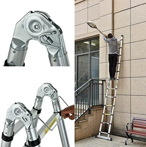 📍【Extension Ladder】Telescopic Extension Ladder is crafted from high-quality aluminum alloy, max weight capacity of up to 330 lbs! Approved by safety standard EN131.