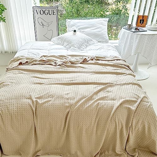 AmyHomie Cooling Blanket King Size, Soft Comfy Bamboo Waffle Blankets for All-Season, Lightweight and Breathable, Keep Adults/Children/Babies Cool on Warm Nights(108×90in,Khaki)