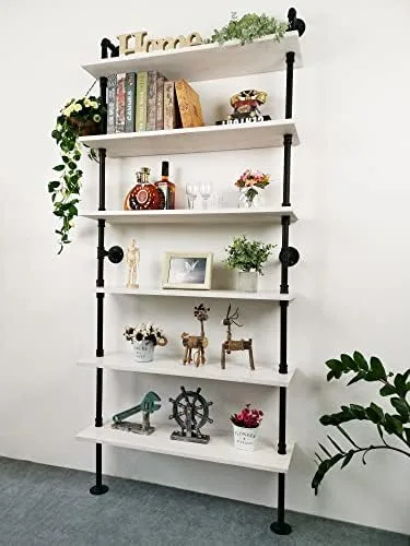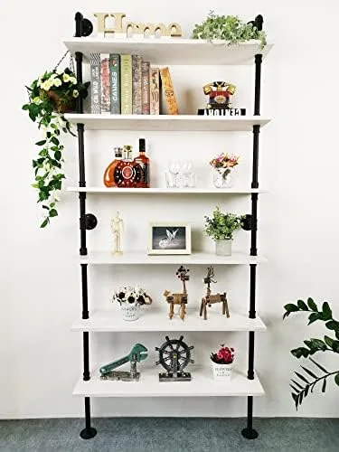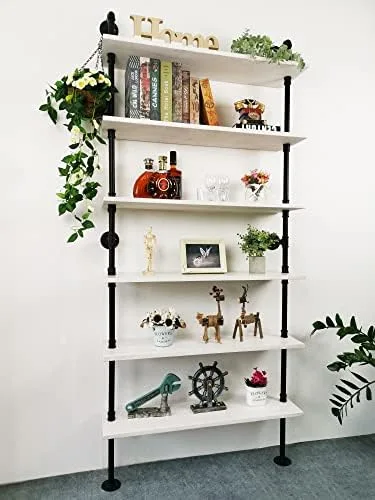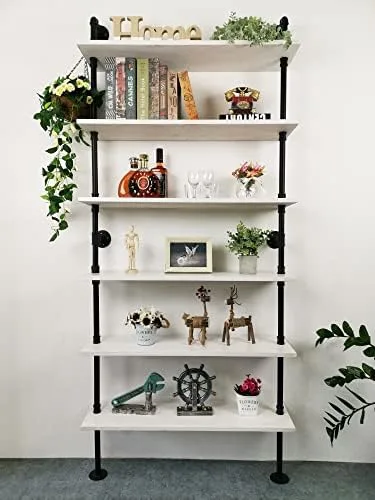 Anynice 6 Tier Industrial Ladder Shelf Bookcase, Wall Mounted Rustic Bookshelf for Living Room Decor and Storage (White, 6 Tier – 10" D x 36" W x 82.5" H)