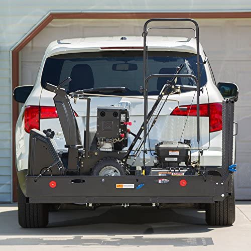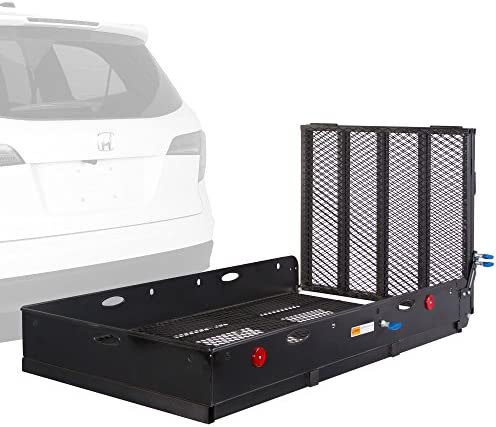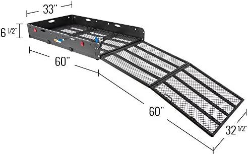 Hitch carrier basket ideal for carrying utility equipment, generators, wheelchairs, power scooters, and cargo weighing up to 500 lbs.