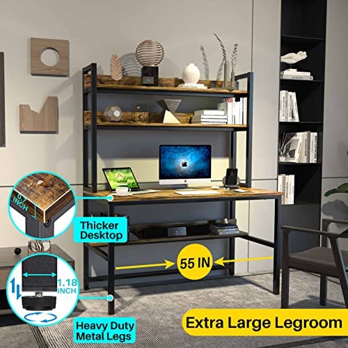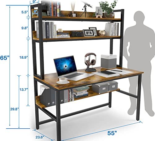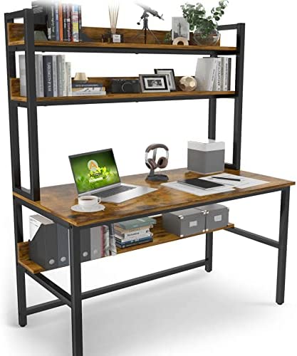 ✅【Extra Large Desktop】This high capacity desk surface is (47.2in*23.6in) offers you super large working & studying space, perfect fit for your laptop or PC monitor. The 2-tier upper storage rack and under desktop bookcase provide plenty of space for storing books, plants, papers, documents, craft, and family photos, etc,