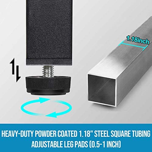The desk frame is made of heavy-duty powder-coated 1.18″ steel tubing which rust-free and durability.