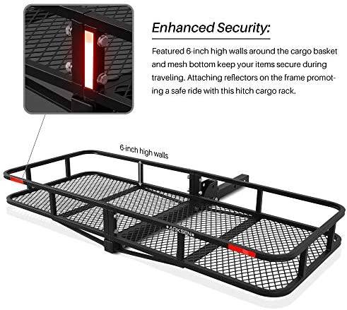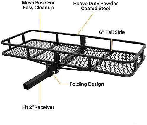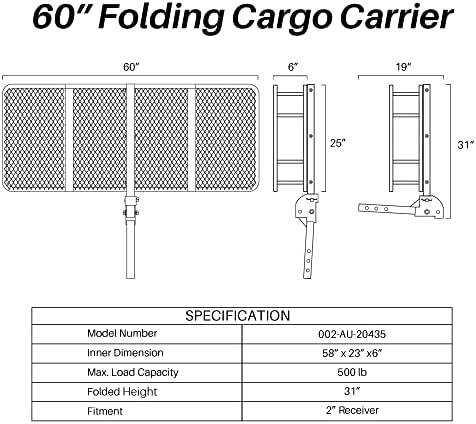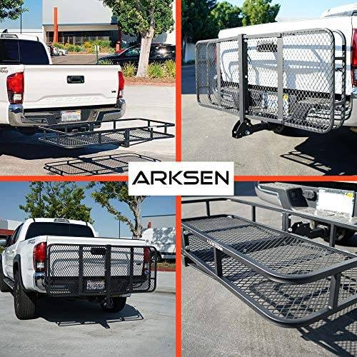 ARKSEN 60 x 25 Inch Folding Cargo Rack Carrier 500 Lbs Heavy Duty Capacity 2 Inch Receiver Luggage Basket Hitch Fold Up for SUV Pickup Camping Traveling