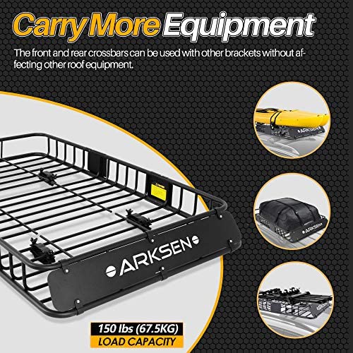 ARKSEN 64 x 39 Inch Universal 150LB Heavy Duty Roof Rack Cargo with Extension Car Top Luggage Holder Carrier Basket for SUV, Truck, & Car Steel Construction