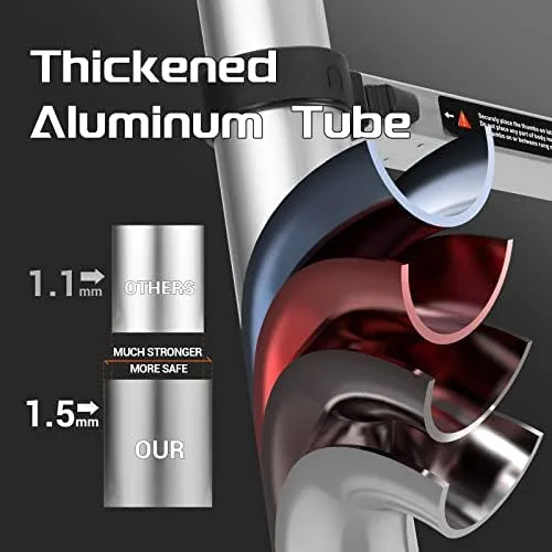 Durable A-alloy material – Adopt high strength and high load capacity thick aluminum alloy. The middle of plastic parts is fixed through screws, surely 100% secure. Thickened plastic parts makes the load-bearing capacity up to 330lbs . The surface is treated with aluminum oxidation for long service life.