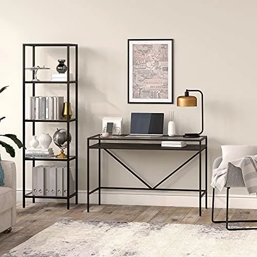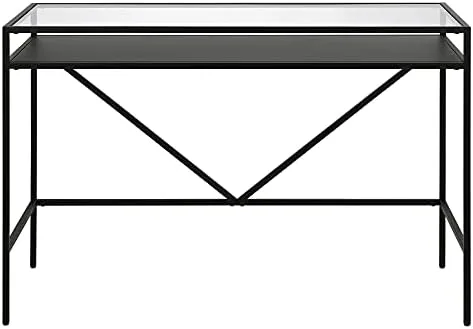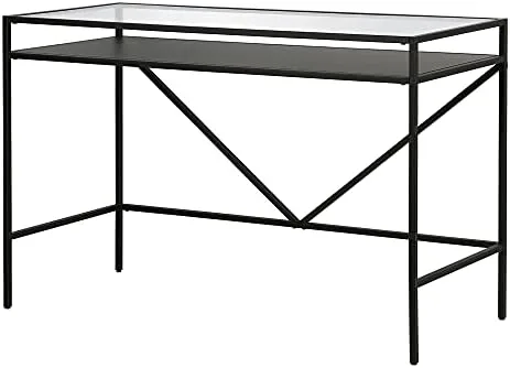 The desktop has a weight capacity of 40 lbs. while the lower shelf can support 15 lbs.