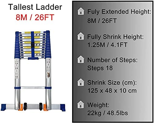 Never climb or stand on the top three rungs or you may lose your balance in the easy Retraction telescopic ladder.