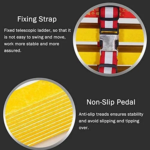 【Carry and Store Anywhere】Thanks to an integrated carrying handle and heavyduty closure strap the foldable Telescoping Ladder can be taken anywhere and it stores compactly in your garage or truck.