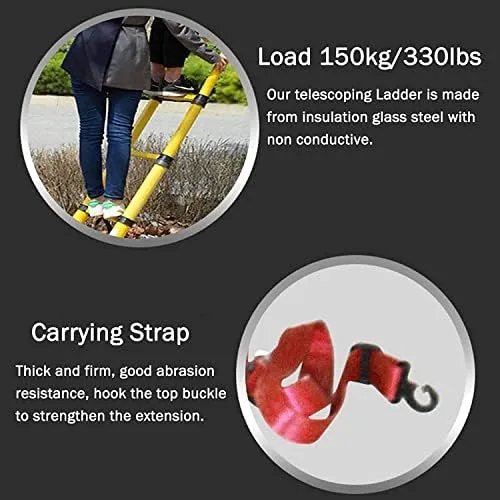 【Non Conductive】Our telescoping Ladder is made from insulation glass steel with non conductive. Strong bearing max Load: 150kg/330lbs.