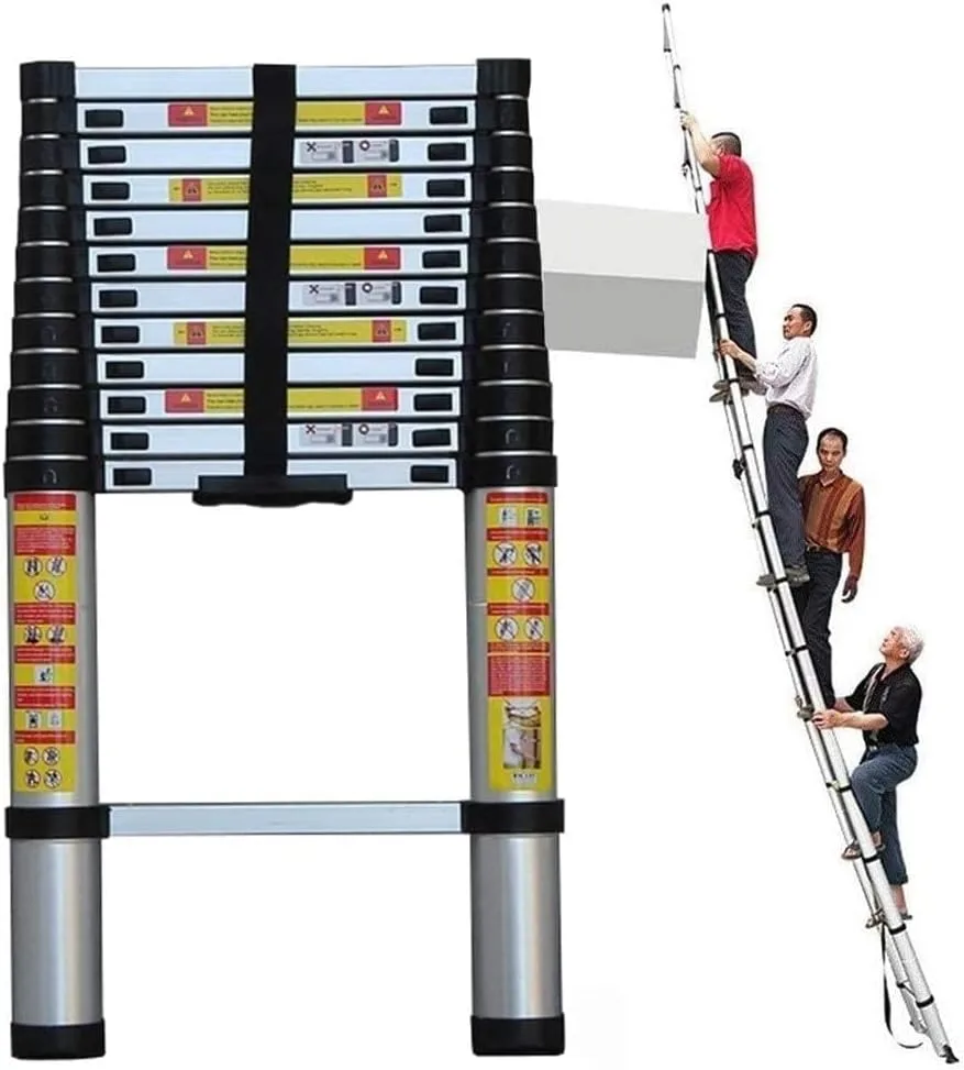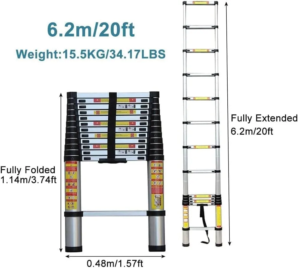 Specification Material: Aluminium alloy Unfolded size: (Optional) 1.4m/4.5ft 2m/6.5ft 2.6m/8.5ft 2.9m/9.5ft 3.2m/10.5ft 3.8m/12.5ft 4.1m/13.5ft 4.4m/14.5ft 4.6m/15ft 5.0m/16.5ft 5.4m/18ft 5.8m/19ft 6.2m/20ft Maximum User Weight: 150kg/330 lbMost liked features: For both individual and professional use Durable and rustproof it’s well worth the money Technical features: Save space:Easily fits into cupboards the back of a van or the boot of a car. Lightweight and easily portable . This practical and reliable ladder will prove worth its weight in gold when tackling a variety of tasks in and outside the home; no more struggling with awkwardly long extension ladders. Great for loft access window cleaning gutter cleaning interior and exterior painting general decorating accessing cupboards maintenance tasks and more! Thanks to the ladder’s extendable design you can safely get into smaller confined spaces which a larger ladder wouldn’t allow.Please Note: *Do not place your hands or fingers between the rung when closing the ladder.Package contents:1 x Telescopic ladder★ Note:1. Because of the manual measurement 13cm size error take physical size must prevail.2. There is a slight difference between the image and the actual element caused by the brightness.3. Incorrect maintenance mode will seriously affect the appearance of the product and the useful life.
