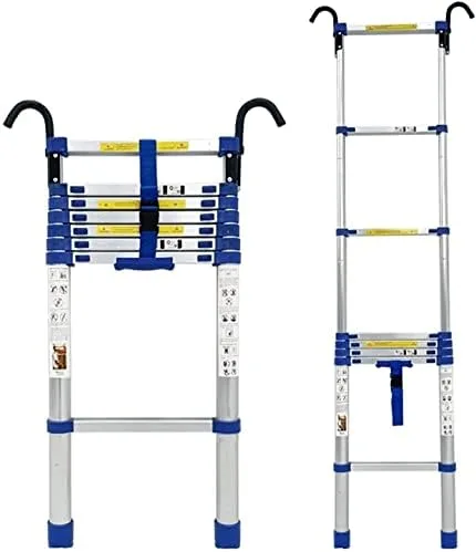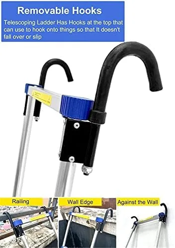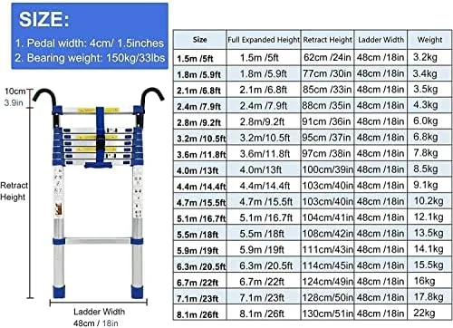 Premium Aluminum Alloy > Highquality Aluminium construction makes this telescopic ladder much safer. Maximum User Weight: 150kg/ 330 lb.