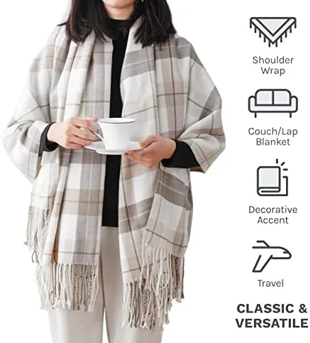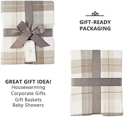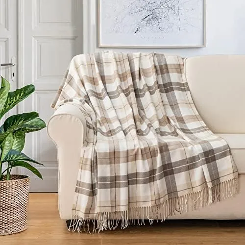 BATTILO HOME Fall Plaid Throw Blanket for Couch, Farmhouse Checkered Decor Throw, Lightweight Beige Throw Blankets for Bed Sofa Neutral Fall Decor, 50"x60"