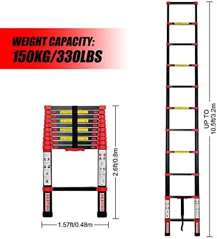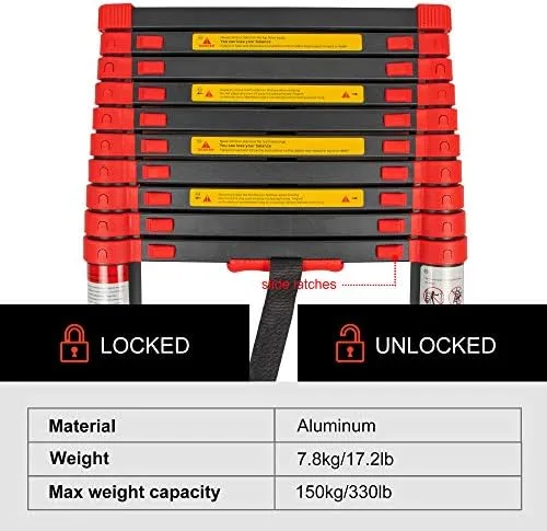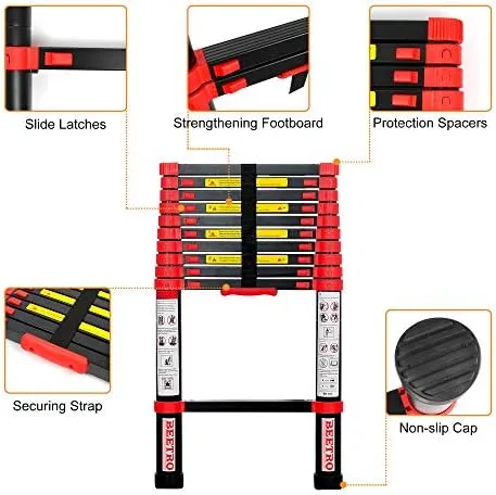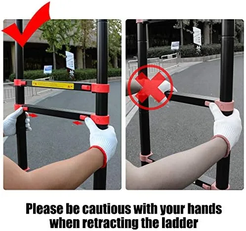 EXTENSION AND RETRACTION DESIGN – Our ladder is designed with slide latches, making sure that you can adjust step by step to reach and retract any desired height without effort and protection spacers avoid bumping and friction during retraction.
