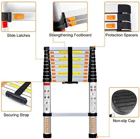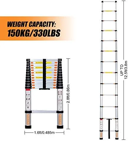 BEETRO 12.5ft Aluminum Telescoping Ladder, Extension Folding Ladder, Multipurpose Ladder for Roofing Business, Outdoor Working, Household Use and More, 330 LB Capacity