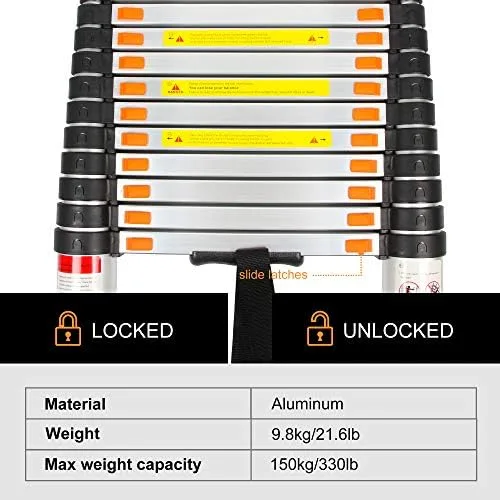 EXTENSION AND RETRACTION DESIGN – Our ladder is designed with slide latches, making sure that you can adjust step by step to reach and retract any desired height without effort and protection spacers avoid bumping and friction during retraction.