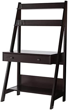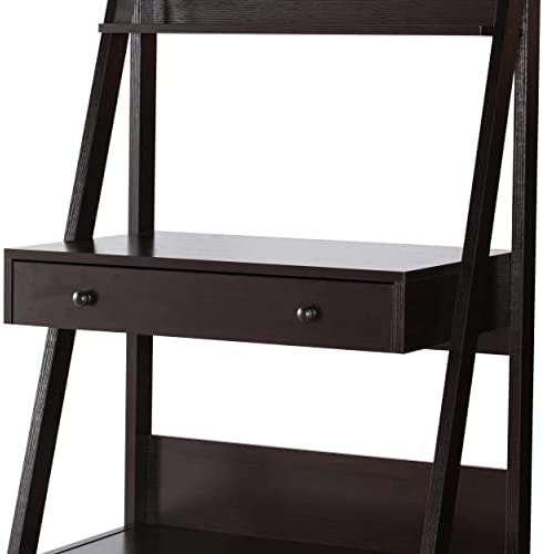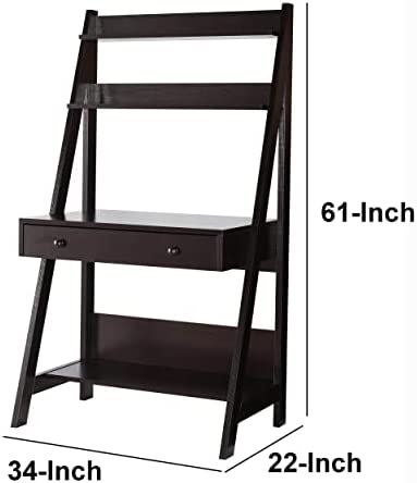Benzara Contemporary Style Ladder Home Office Desk with 3 Open Shelves and 1 Drawer, Brown