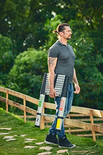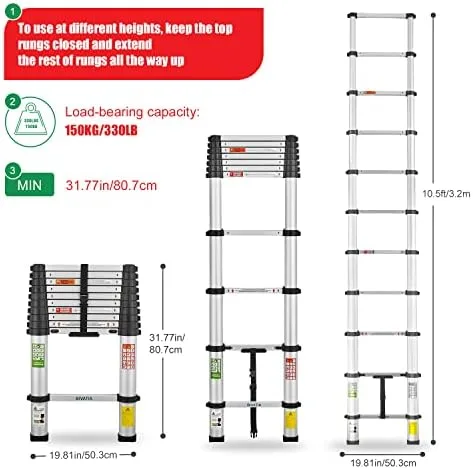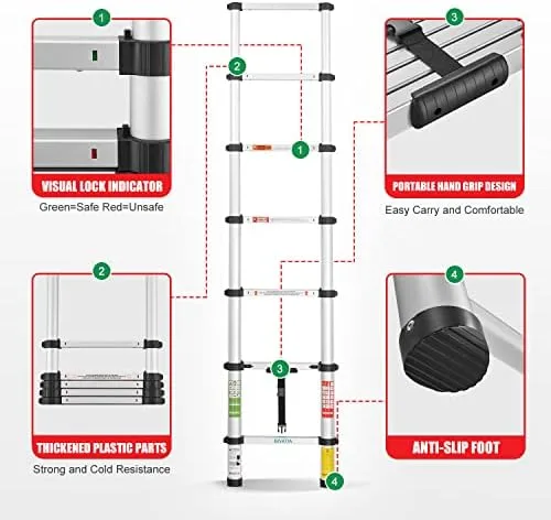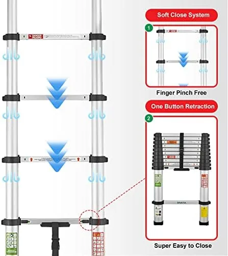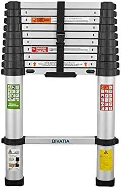 BIVATIA 10.5 Ft Smartsafe Aluminum Telescoping Ladder: Telescopic Extension Ladder Retraction Collapsible Ladder Portable Folding Lightweight Ladder Type 1A with 14 ft. Max Reach
