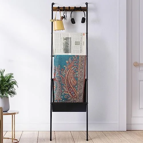 【Versatile Usage】There are 5 plastic hooks on the top of the black blanket ladder, and a single hook can bear up to 8 lbs. The throw blanket ladder can store different items, providing 5 detachable hooks, 4 hanging rods, a cloth pocket.