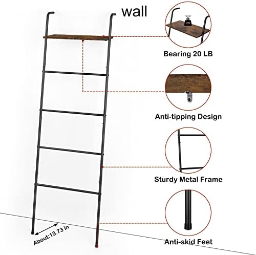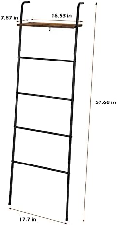 🏡【DIMENSIONS】Approximated Dimensions:17.7 X 7.87 X 57.68 inches. This leaning blanket ladder with four towel bars, so you can easily organize and display your quilts, towels, scarfs, and ties! Also, you can place green plants, decorations, books, or toiletries on the top storage shelf. Weight capacity up to 20 lb.